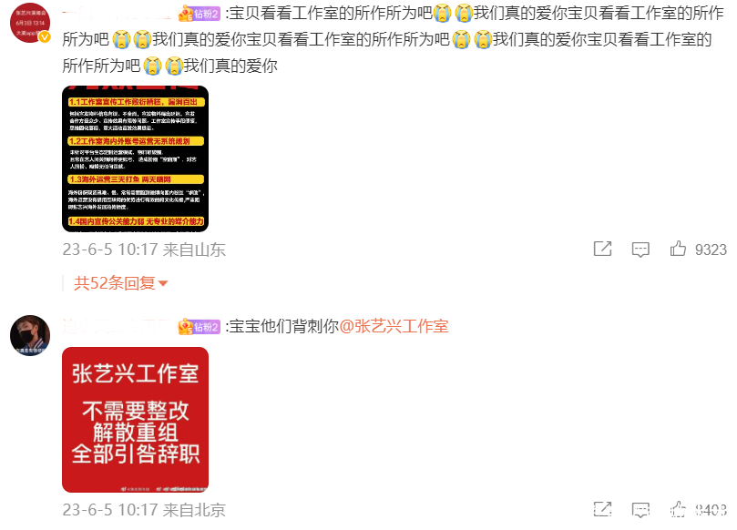 张艺兴粉丝还回首了张艺兴职责室这些年来犯下的诞妄,包括但不限于搞黄张艺兴正剧资源、被顶奢品牌市集部投诉、以张艺兴款式借鞋子给其他明星穿、品牌找张艺兴代言迟迟得不到回话,张艺兴请节目组吃饭职责室进军点餐等等。